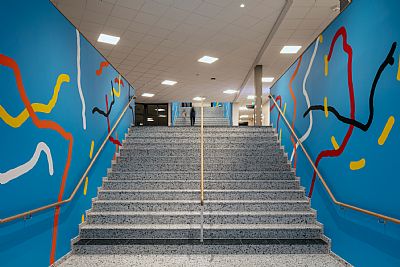 Bygningens åbenhed mod gaden betyder, at aktivitetshusets indre bliver en integreret del af bydelens offentlige rum. Her vil folk færdes sig i store dele af døgnet. En store, centrale trappe er aktivitetshusets rygrad, der fører op gennem bygningen. Rum, der om dagen er dedikeret til elevernes gruppearbejde, bliver om aftenen stedet for foredrag og møder. Billedkunst-, tekstil- og musiklokaler byder velkommen til kulturskole og studiekredse. Mellemetagens opholdsrum bliver et mødested for kulturskole og sportsforeninger. I hjertet af bygningen indtager kulturrummet en central plads. Det er designet til at byde velkommen til gæsteforestillinger fra Riksteatern og andre aktører. Her findes skolens arena for musik- og danseoptrædener samt en række foredrag og præsentationer.