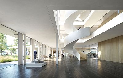 Det nye bygget vil bestå av kontorer som er fleksible i størrelse, konferanserom og en offentlig restaurant som vender mot innsjøen. Funksjonene er sammenkoblet via et nytt sosialt atrium som skaper synergi og kunnskapsdeling mellom de forskjellige avdelingene. Atriets sentrale posisjon tilfører identitet og gir en følelse av tilhørighet for alle som bruker bygningen.