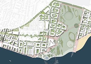 Oppgaven for C.F. Møller Architects består av å designe og prosjektere arealene rundt husene for å skape attraktive, levende og grønne byrom og boligstrøk.