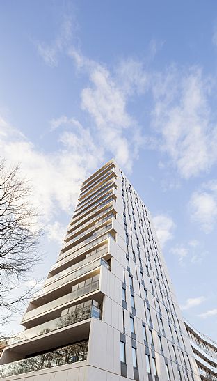 I tornet ligger de större lägenheterna med utsikt åt flera håll och rymliga terrasser, medan den lägre delen (som ska vara färdig i mitten av 2015) innehåller tvåplansbostäder med balkonger och takterrasser. De skulpturala formerna och prefabricerade vita putsade terrazzofasaderna ger byggnaden ett ljust och intressant utseende som varierar med de många betraktningsvinklarna från den omgivande staden.