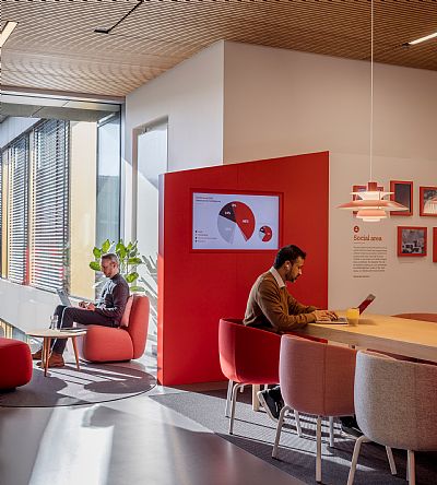 - Flexibla och öppna arbetsytor med "gröna" avskiljningar av växter och planteringar.