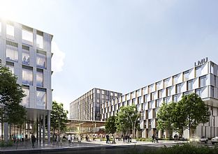 The masterplan focuses on short distances, clear orientation and an attractive design. The new building for the LMU Klinikum at the Großhadern Campus will comprise a total of six new clinical centers. The oncology and the research/teaching building form the eastern and western endpoints of the spine, which is the main connecting element for all the medical centres. The generously-sized entrance area opens up perpendicularly to this main axis, giving expression to the new, high-quality site.