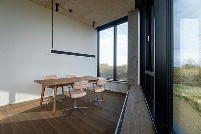 Opgaven var at skabe et nyt domicil til Aduro – producent af moderne brænde-, pille- og hybridovne – hvor funktionalitet, æstetik og placering gik op i en højere enhed. På en kileformet grund med over seks meters fald er der skabt en arkitektonisk helhed, der maksimerer udsigten over Aarhus, adskiller trafikstrømme og spejler Aduros kerneværdier: varme, enkel elegance, robusthed og ærlighed.