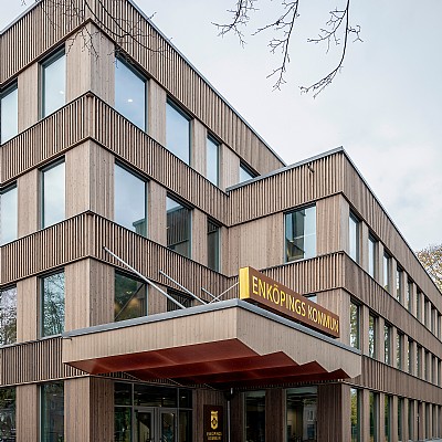 Et nyt fleksibelt og moderne kontorhus til Enköpings kommune, der indeholder en række klimavenlige initiativer med bl.a. anvendelsen af træ og solceller.