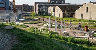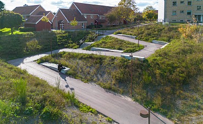 Banebyenin Viborg, als alte Eisenbahnstadt, folgt einer klassischen Entwicklungsgeschichte, bei der ehemalige Industrie- und Eisenbahnflächen in ein neues Wohngebiet umgewandelt werden. Banebypark bildet einen grünen und inklusiven Stadtraum, der Teil eines zusammenhängenden Wegenetzes ist, das vielfältige Erlebnisse und Aktivitäten bietet und sich an alle Altersgruppen richtet. Mit dem Projekt wird ein natürlicher Raum geschaffen, der eine hohe Lebensqualität in der kompakten Stadt fördert. Banebypark erstreckt sich über etwa 11.000 m2 und bietet vielfältige Erlebnisse und Aufenthaltsorte. Der Park dient als ein zentraler Stadt- und Erholungsraum, der sich natürlich in das Wegenetz der Umgebung einfügt. Der "Treffpunkt" im Park besteht auseiner zentrale Pavilion-Struktur, die spielerische Aktivitäten, Orte zum Entspannen und eine abwechslungsreiche Landschaftsgestaltung bietet. Die Hügel und der See innerhalb des Parks bieten Freizeit- und Aktivitätsbereiche mit Schwerpunkt auf Bewegung, Sinneserfahrung und Natur und dienen gleichzeitig der Regenwasserbewirtschaftung von Banebyen. Folglich dienen die großen Senken nicht nur als Erholungsflächen, sondern auch als Bereiche mit besonderem Nutzen bei Starkregen. .