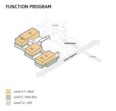 Das Projekt ist Teil des Masterplans für das Universitätsklinikum Tübingen in Baden-Württemberg und erfüllt die hohen Nachhaltigkeitsstandards des Landes. Energieeffizienz, ein gesundes Raumklima, niedrige Lebenszykluskosten und lokale Materialien mit einem geringen CO2-Fußabdruck stehen im Mittelpunkt des Entwurfs.