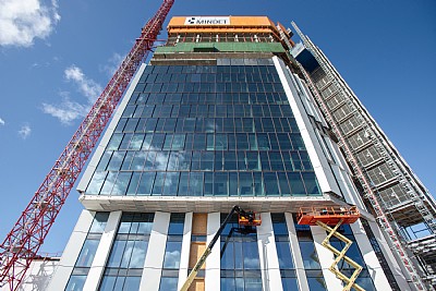 Der Turm selbst ist als helles und schlankes, skulpturales Wahrzeichen konzipiert, das mit vertikalen grünen Foyers sowohl den näheren als auch den weiteren städtischen Kontext ergänzt. Die Fassaden bestehen aus einem räumlichen Relief aus hellem Terrazzo, dessen Form sich an der Sonneneinstrahlung orientiert. Der Fokus liegt dabei auf optimalen Tageslichtverhältnissen, guten Ausblicken und einem gesunden Raumklima. Die Gebäudegeometrie orientiert sich nach allen Seiten und erzeugt so eine charakteristische und strukturell geprägte Wirkung auf mehreren Ebenen.