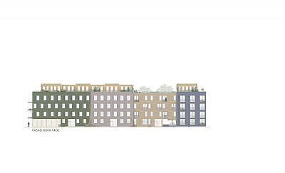 Die detaillierte Fassadengestaltung und die strategisch platzierten Penthouses, Terrassen und Balkone sowie die Variation von Farben und Materialien gliedern den Gebäudekomplex in unterschiedliche, kleinere Einheiten, in denen jedes Treppenhaus seine eigene Identität hat. Die Eingänge sind zurückgesetzt und ermöglichen direkten Zugang zum Innenhof, was die Verknüpfung der verschiedenen Gebäudeteile verstärkt. Die vielseitig nutzbaren Erdgeschossflächen des Gebäudekomplexes tragen dazu bei, ein aktives und lebendiges Viertel zu schaffen, das an die Geschichte des Hafengebiets als zentraler Handelsplatz anknüpft.