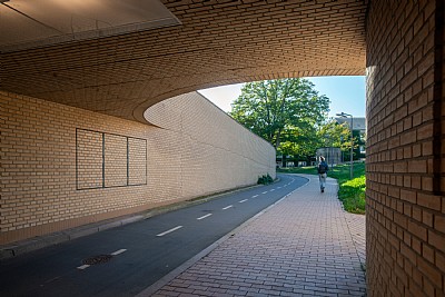 Der Fuß- und Radweg, der unter der Nørrebrogade verläuft, ist von schlichten, wellenförmigen Ziegelwänden umschlossen. Beim Übergang in das Gelände des Universitätsparks nehmen die Ziegelwände an Höhe ab. Mit Anschlüssen an neue und bestehende Wegesysteme geht der Weg allmählich in das neue Universitätsviertel über und fügt sich mit seinem Verlauf ganz natürlich in die hügelige Umgebung ein. Das Universitätsviertel ist auch über breite Treppen mit geschwungenen Wangen aus Ziegelsteinen an den Tunnel angeschlossen.