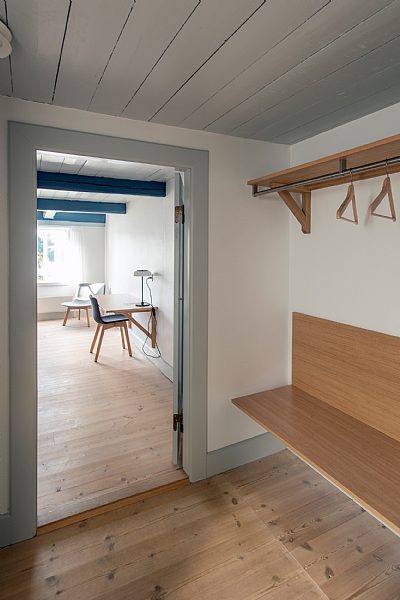 Im Erdgeschoss des Herrenhauses befinden sich Speisesäle, Fernsehzimmer, Herrenzimmer, ein Kabinett, eine Bibliothek und ein Gartenzimmer, die als Aufenthaltsbereiche für die Gäste des Anwesens dienen. Im 1. Obergeschoss befinden sich Gruppenräume und Schlafräume. Alle Schlafzimmer sind mit neuen Möbeln ausgestattet, die den ursprünglichen Geist der Gebäude respektieren. In den Stallgebäuden wurden neutrale Farben gewählt, während das Schloss seine kräftigen Wandfarben und grauen Holzarbeiten beibehielt. Die Palette der Materialien wurde sorgfältig ausgewählt, um dem historischen Charakter der Gebäude gerecht zu werden und moderne Annehmlichkeiten harmonisch zu integrieren.