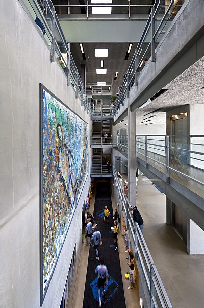 The distinctive crystalline shape is defined by the stand roofs around the pitch, the indoor facilities and the four corner entrances. In combination with the stadium's light, open facades in expanded steel mesh, a sports complex is thereby created which presents an open and welcoming face to the town. The project will be realised in stages. So far, three stand sides have been constructed, namely the two long sides and an end stand.