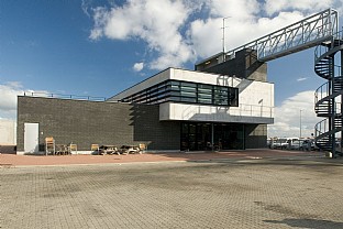 Bygningens form med fremspring og passasjer skaper le for det harde klimaet på den ytre moloen og nyanserer sollyset gjennom de store glasspartiene. Materialene er betong og tegl: Rå som havneområdet selv, og samtidig et svar på de utfordringene stedet gir.