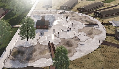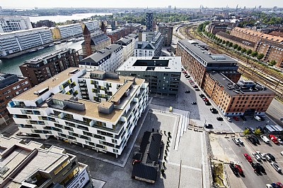 På de tidligere havnearealene ved Søndre Frihavn i København er det etablert en ny bydel etter en plan fra arkitekten Adriaan Geuzes. Enkeltbygningene er designet av ulike arkitekter, blant annet C.F. Møller, som også har forestått plasser, belegninger og parkeringsanlegg. Området har fast steinbelegning med en robusthet som refererer til tidligere kaianlegg. På et hevet platå er det anlagt en sentral plass hvor den gamle stasjonsbygningen er gjenoppbygd og gir mulighet til både utendørsopphold og fellesskap, samtidig som den gir adgang til parkeringsanlegget under. Parkeringsanlegget til mer enn 1200 biler er anlagt under hele området. Løsningen dekker de store parkeringsbehovene i de sentrale byområdene og ivaretar samtidig behovet for trafikkfrie, rekreative utearealer over terrenget.
