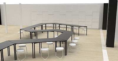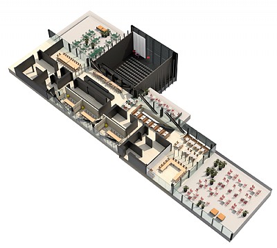 Detailed design of work areas and implementation of the inventory process. Design of special inventory for the café, shop, educatorium and arrival. The special inventory was adapted to be part of the architecture as a natural part of it and at the same time support DAC's special character.