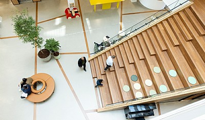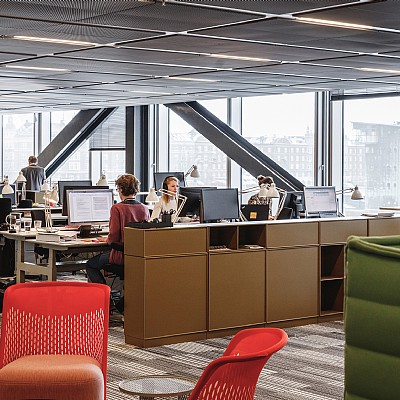 The project created a diversity of workplaces and places, as well as a workplace that invited dynamics and joint activities. Managers and employees with low presence share workplaces and other employees were placed in groups corresponding to departments upon moving in.