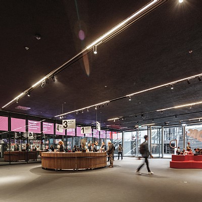 Layout and interior design of café, shop, reception, educatorium and auditorium. All areas were developed based on DAC's values ??and with a focus on functionality in close collaboration with relevant DAC employees.