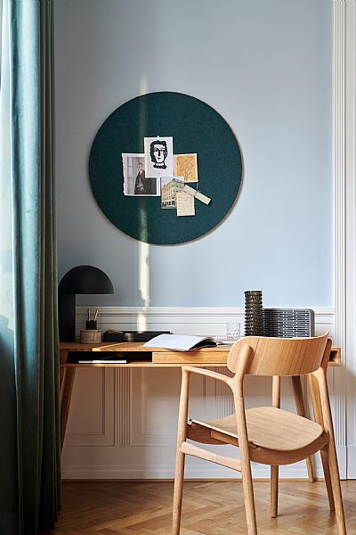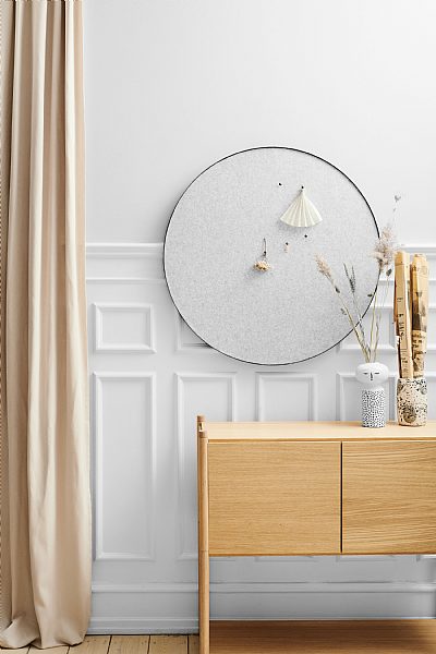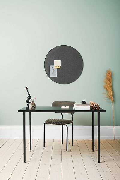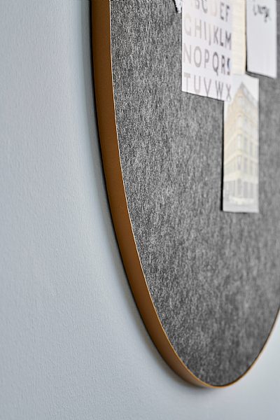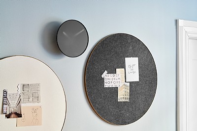 Retell er en rund og innrammet oppslagstavle som skal henges på veggen. Retell kan brukes som nåletavle eller for seg selv som et dekorativt element som samtidig bidrar til å forbedre akustikken i rommet. Designen er enkel, og nødvendigheten har blitt gjort til en dyd. Det ser man blant annet på den fine utformingen av stålrammen og filten som lar deg montere Retell på en elegant og sikker måte med bare én skrue.
