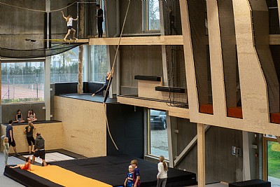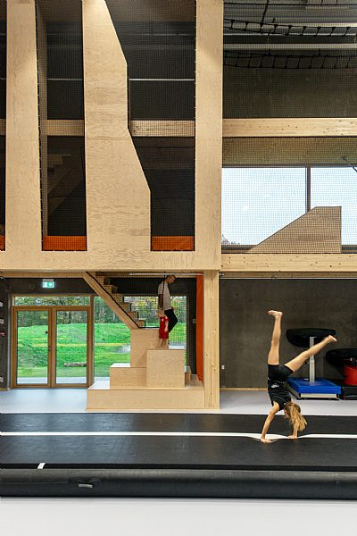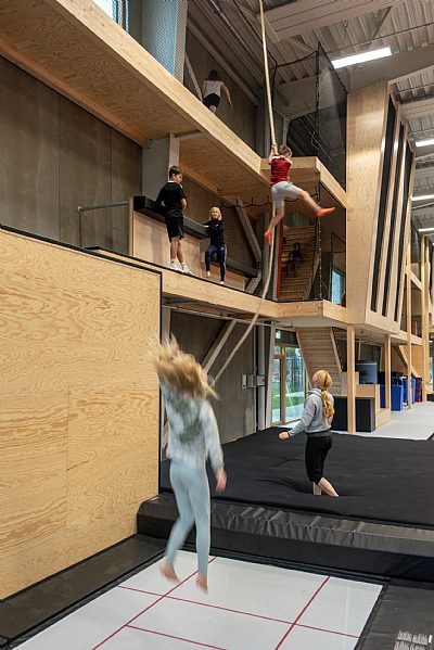 Den nye bygningen rommer fasiliteter for funksjonell trening, rytme og hinderløyper – inspirert av «Ninja Warrior» – samt klubb- og sosiale rom med garderober, kjøkken og møterom. I tillegg til rytmesalen inneholder den nye første etasjen kontorer og fellesarealer med utsikt mot de omkringliggende idrettsaktivitetene. Uteområdene er integrert i det arkitektoniske konseptet gjennom aktivitetsområder, oppholdssoner og trening langs fasadene, og ankomstområdet.