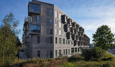 Both social and environmental sustainability have been considered, including the construction process and choice of materials, but also in terms of residents' lifestyle: The proposal includes a bicycle and car pool operated by the housing association and apartments with kitchen interiors specially designed to make recycling easy.