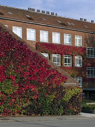 Byggmaterialet är rött tegel, medan fönster, dörrar, trappor och balkonger är i vitmålad metall. På så sätt ger sjukhuset, i likhet med Aarhus Universitet på den motsatta sidan av Nørrebrogade, ett kompakt och homogent intryck.