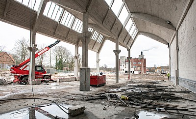 Den 260 meter långa byggnaden, som tidigare var helt sluten och delvis skadad av tidigare tillbyggnader, har nu renoverats och återuppbyggts med fönster och portar för att säkerställa ljus och tillgång. Den befintliga byggnadsmassan har till stor del bevarats, och originalmaterial såsom tegel har återanvänts och återställts för att bevara platsens autenticitet. Byggnaden framträder nu återigen med fasader i ljust tegel så som det från början var menat. Betongkonstruktionerna har varsamt rengjorts och tilläggsisolerats för att förbättra energieffektiviteten. Nya takfönster i de ursprungliga sågtandstaken tillför naturligt ljus och ett hälsosamt inomhusklimat.