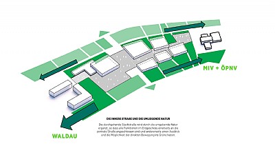 Den Öppna Skola i Waldau (OSW) bygger på DGNB-certifieringskravet med sex projektspecifika teman: flexibilitet, inomhusklimat, hälsosamt boende, optimal drift, livslängd och dubbel funktion. Dessa har inspirerat till att utforma en flexibel hybridbyggnad i trä med ett minimum av bärande väggar för en anpassningsbar och framtidssäker design.