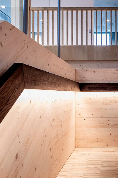 Huset placeras som en fond i parken och planeras för att vara inbjudande, upplevelsevärt och funktionellt både för de som arbetar i huset och för besökare. Det utförs som en hybridkonstruktion med målet att skapa en stor känsla av trä. Byggnadens entréplan innehåller främst externa verksamheter som mötesrum, möteslounge, vigselrum och reception. Uppåt i huset finns aktivitetsbaserade arbetsplatser och stödfunktioner. På översta plan placeras matsal med åtkomst till en stor takterrass i sydväst, internt café samt ytterligare mötesfunktioner. Terrassen möjliggör utevistelse i både sol och skugga och erbjuder både ytor för utelunch och utearbete. Två mindre ljusgårdar skapar rumslighet och visuella förbindelser genom huset.