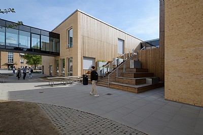 Alla kluster och uppehållsrum har optimala dagsljusförhållanden och är utformade så att de vetter mot utomhusmiljöer och gemensamma innergården. Innergården förbinder klustren, som alla har separata ingångar, och skapar synergi och flexibilitet mellan undervisningslokalerna.