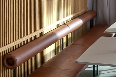 The interior palette focuses on the tactility of materials — wood, metal, stained surfaces, recycled plastic, and a variety of textiles — to achieve both warmth and contrast. The result is an environment that is both durable and sensuous, promoting everyday well-being and a sense of belonging.