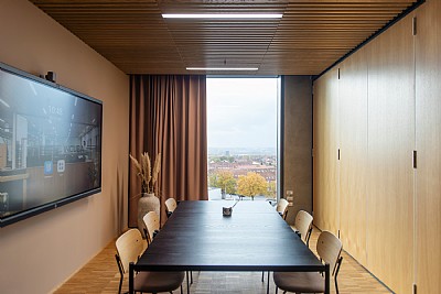 The main challenge was to create a welcoming and coherent interior that accommodates the diverse users of the house — from entrepreneurs and students to staff and executives — and supports both formal and informal encounters and concentrated work. The interior concept was to craft a holistic spatial experience, where overarching coherence meets careful attention to materiality and detail. Colours, furniture and lighting elements were designed to match INCUBA’s visual identity and colour universe, while providing a calm yet modern atmosphere.