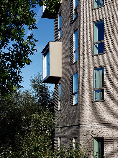 Byggnaden är ett kvartershus med 107 lägenheter i varierande storlekar, tre lokaler för verksamheter samt parkering i två våningar med mellanbjälklag. Genom varierande höjder och uppdelade volymer bryts den stora byggnadsmassan ner och anpassas till stadens skala. Fasaden kännetecknas av olika mönster i teglet, burspråk och balkonger som skapar både variation och en sammanhållen helhet. Bottenvåningen har större takhöjd för funktioner som butik, gårdsentréer och cykelparkering. Privata zoner längs fasaden ger boende möjlighet till avskildhet, medan butikssidan utgör en aktiv zon och en ny urban koppling mot stadens centrum.