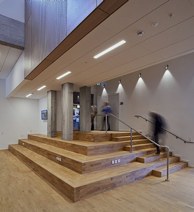 Den ursprungliga takhöjden har återskapats, de bärande pelarna har kvar sin råa form och det finns synliga installationer i taket. Man har även arbetat med att integrera de ursprungliga Panum-färgerna i utmärkande områden, och Panums gamla belysningsarmaturer har återanvänts och byggts om för användning med energibesparande LED-ljuskällor.