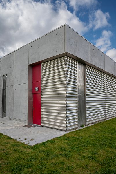 Det yttre uttrycket kompletteras av en genomtänkt belysningsstrategi där byggnaderna belyses konstnärligt på kvällen, vilket synliggör den tekniska funktionen och skapar en dialog mellan byggnad, sammanhang och människa. Dessutom har klimatvänliga materialval gjorts, där återvunnet aluminium utgör ett centralt element och taken är beklädda med gräs för att integrera byggnaderna i landskapet.