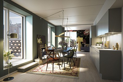 C.F. Møller Architects has been involved in the development of the district plan for Carlsberg City and the development is in accordance with this as a varied volume with recesses in the façade facing the compact streets and spaces. This creates life, rhythm and relief in the façade, with a rich variety of roof terraces, balconies and urban gardens on the ground floor.