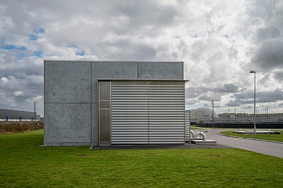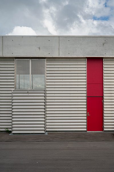 The buildings maintain a consistent and industrial architectural identity, with façades clad in glossy sinusoidal aluminium panels. This material choice is used throughout the site's technical facilities, creating a strong visual coherence. The façades are articulated with frames and openings that reflect the buildings' functionality, and daylight plays a central role in creating bright, inviting working environments.