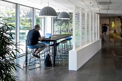 Development and implementation of activity-based work environments with free-seating, including the preparation of an overall organisation of the building into three zones: Collaboration zone, Dynamic zone, and Concentration zone.
