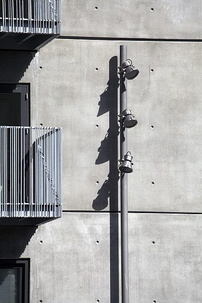 Optimizing the circulation and gross areas of the complex has successfully provided funds to upgrade the shared facilities: The buildings offer both shared kitchen facilities and common rooms on various floors, common fitness facilities, internet café and workshops as well as outdoor areas designed for sports, movement, health and social life. The roofs are used for a ball court and various roof terraces, and the common facilities are highlighted with colours, graphics and scenographic lighting to emphasize their importance in the complex.