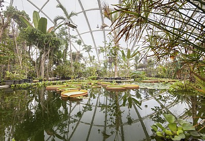 The project unites architecture, engineering and landscape architecture so closely that disciplines overlap and become inseparable: i.e. in a hothouse, landscape architecture also becomes interior design. The hothouse integrates a natural level difference of 3 meters via interior terracing, including rice plants, and sinuous paths around an interior pond-landscape with Victoria water lilies and mangroves.