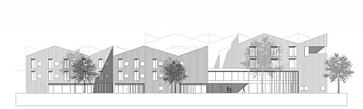 The nursing home comprises a total of four interconnected buildings on three floors that treat each of the four phases of dementia, and also has a central entrance area and canteen, with contact to all of the buildings.
