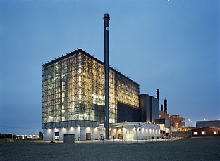 The main building covers 115 x 31m and is 45 m tall. It is largely built up of glass, exposing the primary processes - the furnace and the gas purification plant - partly as part of the architectural expression, and partly as a pedagogical element. The openness of this building contrasts with the other lower and more closed-off buildings.