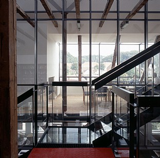 C.F. Møller Architects' previous office in Vejle is established in a former factory building. The upper three floors of the building is an open studio - connected by a vertical void/stairway - and the transformed building is characterized by the original constructions and materials combined with modern, contemporary elements and details.